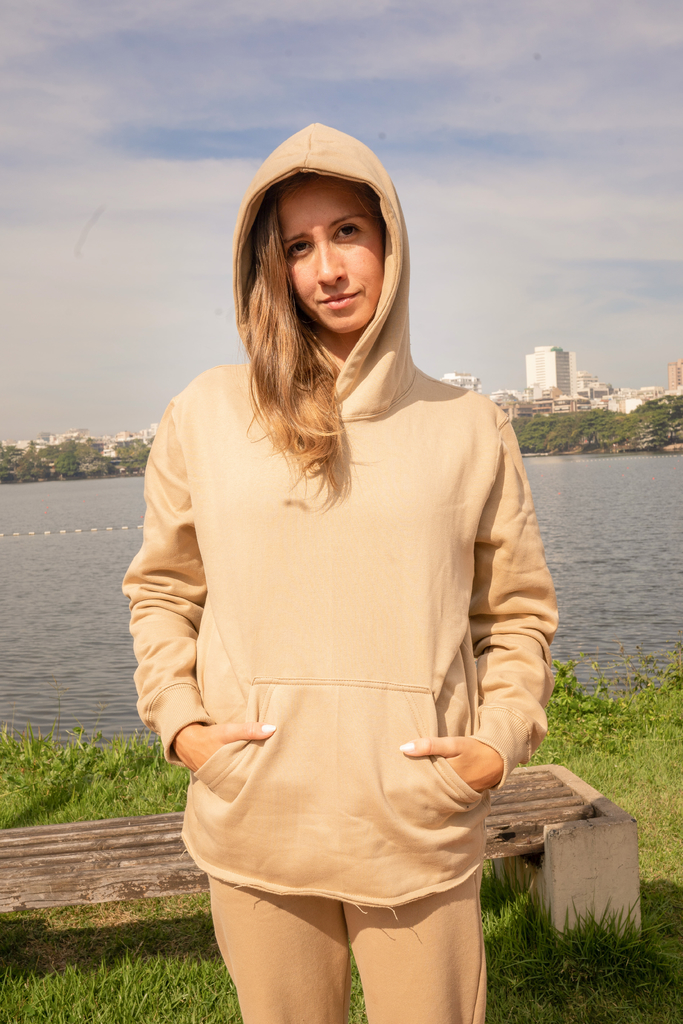 Esse não é qualquer casaco com capuz, é O casaco! Queridinho do Brasil, essa modelagem é perfeita pra você que prefere cortes mais larguinhos e práticos, afinal, esse bolso grande da frente é feito pra esquentar as mãos e guardar aquela tralha básica do dia a dia como chaves, celular e coisas do tipo, sabe?